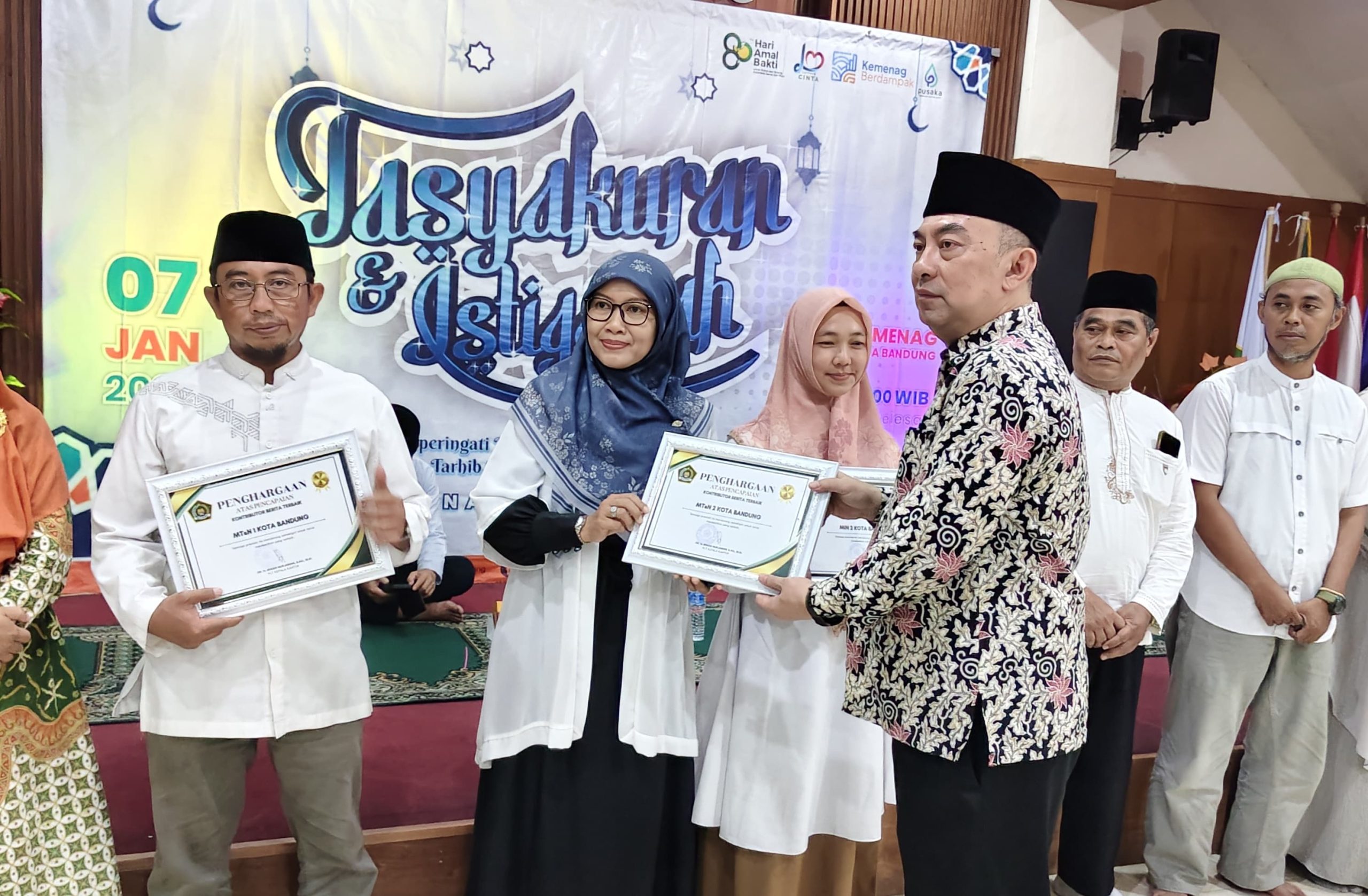 Humas MTs Negeri 2 Kota Bandung ditetapkan sebagai Kontributor Berita Terbaik oleh Kantor Kementerian Agama Kota Bandung. Penetapan tersebut disampaikan dalam kegiatan Tasyakuran Hari Amal Bakti (HAB) ke-80 Kementerian Agama Republik Indonesia Tahun 2026 Tingkat Kota Bandung, yang dirangkaikan dengan Tarhib Ramadhan dan Peringatan Isra Mi’raj 1448 Hijriah, Rabu (7/1/2026), di Kantor Kementerian Agama Kota Bandung.
